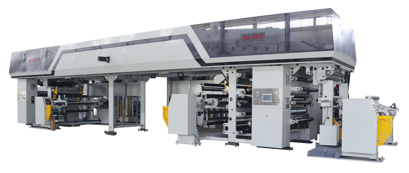 Consists of 1st unwind unit and 2nd unwind unit , both equipped with auto splicing. Double-armed turret type unwinder.Adopt fixed type base + movable base, the movable base can be transverse reciprocating motion.EPC transverse hydraulic control system. 1st unwind unit adopt up cutter and 2nd unwind unit adopt down cutter). Tension detecting dancing roller joins in the close-loop control.Web is fixed on the air expanding shaft and safety chucking device.The coating adopts anilox roller which offer evenly furnishing glue, Anilox roller holding adopt shaft-less air chucking.Full-closed type, upper and lower double-layer dryer.High pressure of support rollers impression system with Independent driving.Double-armed turret type rnwinder.Tension control system with dancer roll pick up unit, PLC control.Adopt active-discharge type Static Electricity Eliminator